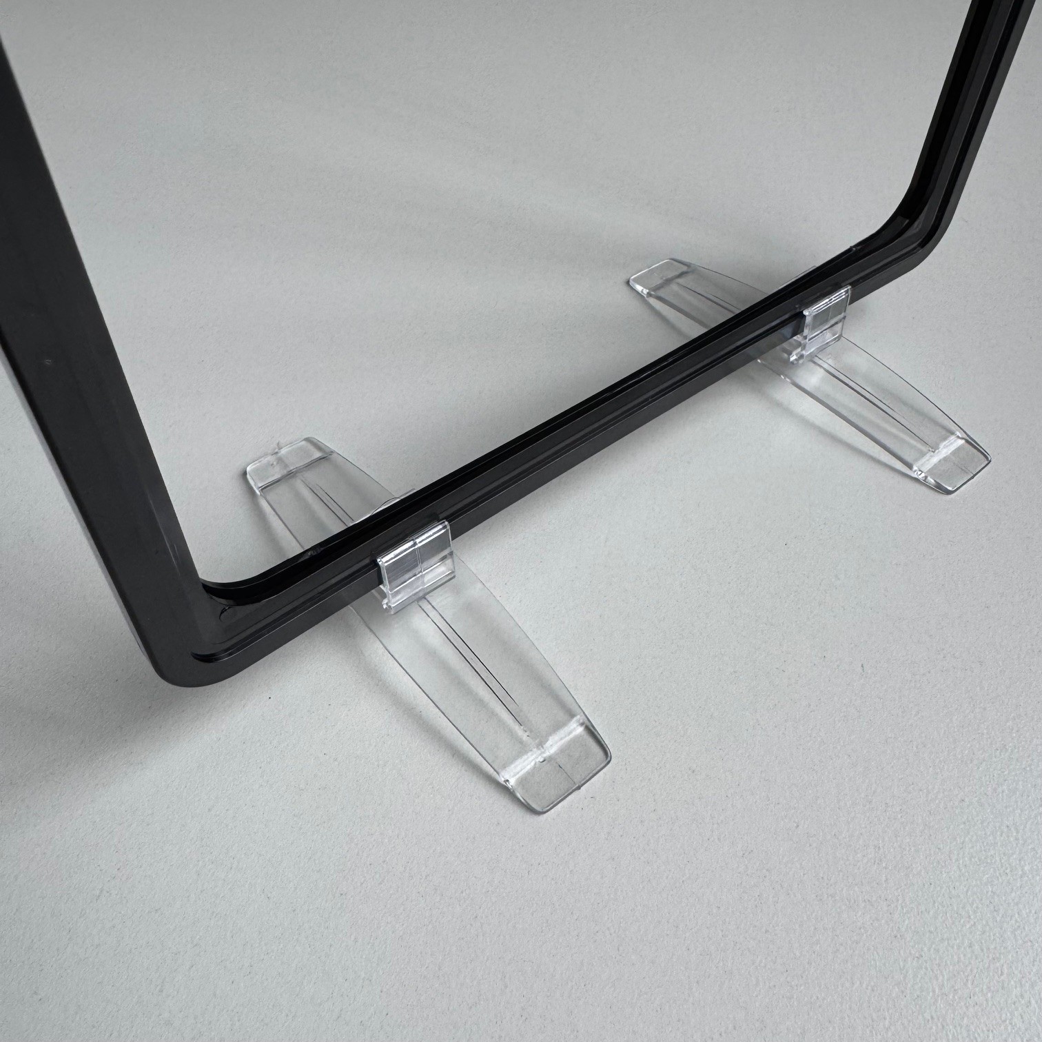 Houder transparant voetje voor prijskaartraam - type rechtop/vertikaal voor profiel-1, voor A6 - A5 - A4 en A3 prijskaartramen. Per prijskaartraam heeft u 2 voetjes nodig. Ze worden per stuk verkocht.