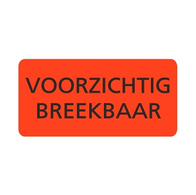 Etiket voor op pakketten fluor rood 95x48mm bedrukking: VOORZICHTIG BREEKBAAR, aantal 500 per rol. Gevaren etiket, transport, pakket.
