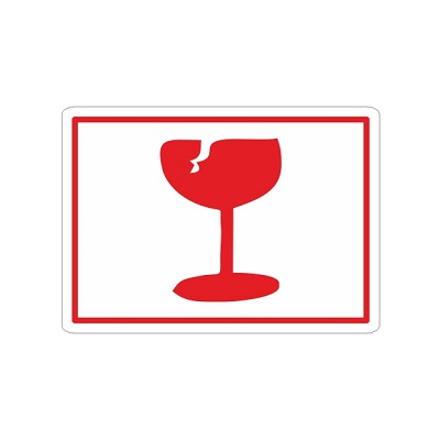 Etiket voor op pakketten wit/rood 98x71 mm bedrukking: pictogram met glas, 500 per rol.