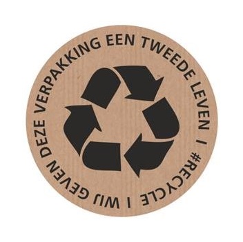 Etiket diameter 60 mm bedrukking: #RECYCLE Wij geven deze verpakking een tweede leven, heeft 250 etiketten per rol.