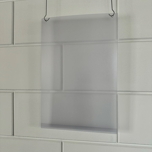 Acryl u-houder "Luxe" A5 plus - uitvoering met 2 metalen bevestigingsklemmen voor aan de muur.