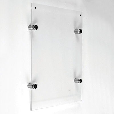 Acryl u-houder "Luxe" A3 plus - uitvoering met 4 metalen bevestigingsklemmen voor aan de muur. Papiermaat 30x42 cm.