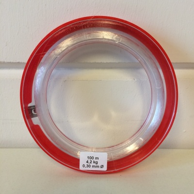 Nylon draad 0,30 x 100 meter, maximale draagkracht 4,2 kg, op arm-ring-spoel. Made in Germany