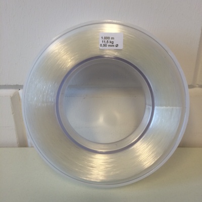 Nylon-draad 0,50 x 1000 meter, maximale draagkracht 11,5 kg, op arm-ring-spoel. Made in Germany