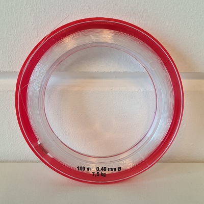 Nylon-draad 0,40 x 100 meter, maximale draagkracht 7,5 kg, op arm-ring-spoel. Made in Germany.