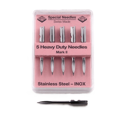 Naald S lang Zwitsers Mark I long Heavy Duty 5 stuks. Swiss Made. Totale lengte van deze naald is 40mm, dikte 2,2mm. Mark I Long & Heavy Duty. Materiaal: All Steel. Zo lang de voorraad strekt. Artikel wordt niet meer geproduceerd, derhalve niet meer leverbaar.