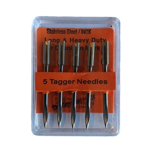 Naald S standaard Dennison Mk II en Mk III, Mk 2, Mk 3, U-Tach, Arrow 3S, Utach S, Sigel ZB 600, doosje met 5 stuks, voor standaard Mark II en Mark III textieltangen. Totale lengte van deze naald is 33,6 mm, dikte 1,9 mm. Uitvoering met Plastic Shank.