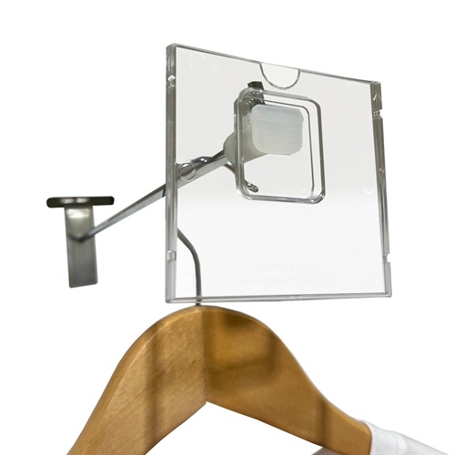 Frontpen kaarthouder 80x80mm transparant. Affichehouder 8x8cm voor op enkele boardhaak. Inschuif aan bovenzijde.
