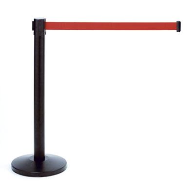 Toegangspaal kleur zwart hoogte 1 meter met rode riem, lengte 180 cm, en 1 wandbevestiging. De riem kan ipv aan de wandbevestiging ook aan de volgende toegangspaal bevestigd worden. Het gaat per artikel om 1 paal met riem. Diameter voet 36cm en hoogte totaal 91,5cm.