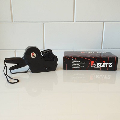 Prijstang Blitz 2-regelige uitvoering met op elke regel 14 / 14 cijfers. Voor etiketten 37x28mm. Passende etiketten beginnen met artikelnummer 27403???