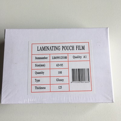 Lamineerhoes / lamineersheets glanzend 65x95 mm dikte 2 x 125 micron, verpakking met 100 stuks.