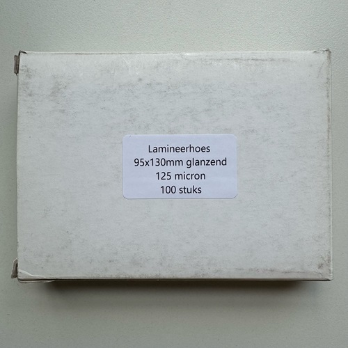Lamineerhoes 45x95 mm 125 micron, doosje met 100 stuks. Maximaal 2 doosjes beschikbaar.