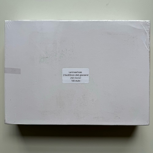Lamineerhoes 216x303 mm, A4 dikte 250 micron, doos met 100 stuks.