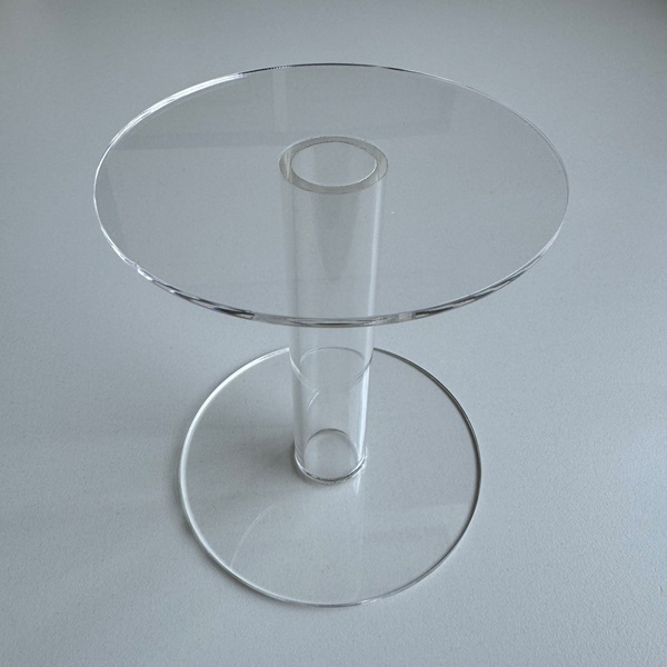 Acryl-schoenstandaard / zuiltje. Ronde uitvoering, diameter 13 cm hoogte 15 cm. De verbindingkoker heeft een diameter van 30 mm. Geproduceerd in Europa. Levering op bestelling - levertijd ongeveer 2 weken.