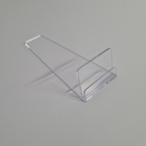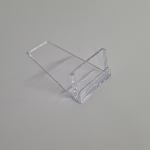 Standaardje transparant afmeting bodemmaat breed 40x50 mm voor prijskaartjes die vertikaal of vanaf 2 zijden bekeken moeten kunnen worden. Per zakje van 100 stuks. Geschikt voor materiaaldikte voor flexibel materiaal tot 1mm, en voor hard materiaal tot 0,5mm. Universeelstandaardje, kaarthoudertje.