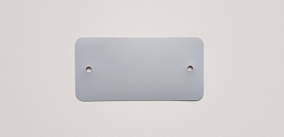 Kunststof PEM labels 54x108 mm grijs dikte 0,20mm 2 gaten 5mm, afgeronde hoeken, doosinhoud 1000 stuks. PEM Eco 200 vervanger voor PVC.