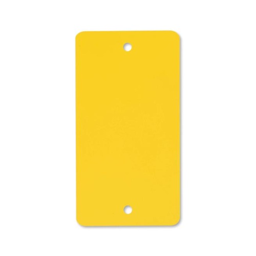 Kunststof PEM labels 54x108 mm geel dikte 0,20mm 2 gaten 5mm, afgeronde hoeken, doosinhoud 1000 stuks. PEM Eco 200 vervanger voor PVC.