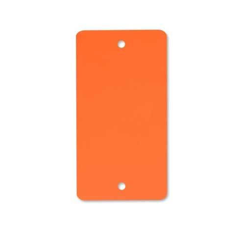 Kunststof PEM labels 54x108 mm oranje dikte 0,20mm 2 gaten 5mm, afgeronde hoeken, doosinhoud 1000 stuks. PEM Eco 200 vervanger voor PVC.