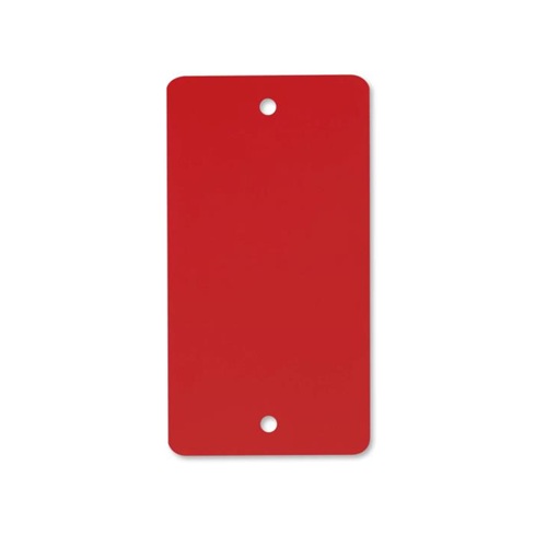 Kunststof PEM labels 54x108 mm rood dikte 0,20mm 2 gaten 5mm, afgeronde hoeken, doosinhoud 1000 stuks. PEM Eco 200 vervanger voor PVC.