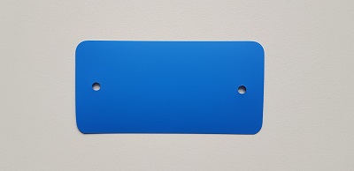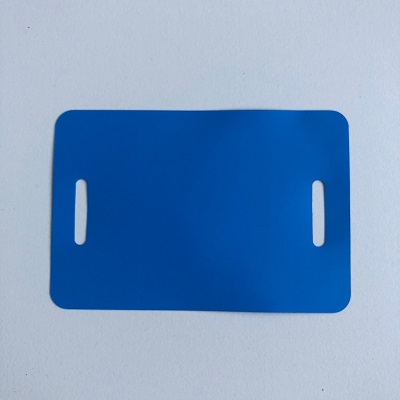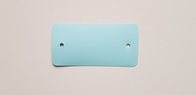 Kunststof PEM labels 54x108 mm pastel blauw dikte 0,20mm 2 gaten 5mm, afgeronde hoeken, doosinhoud 1000 stuks. PEM Eco 200 vervanger voor PVC.