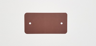 Kunststof PEM labels 54x108 mm bruin dikte 0,20mm 2 gaten 5mm, afgeronde hoeken, doosinhoud 1000 stuks. PEM Eco 200 vervanger voor PVC.