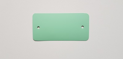 Kunststof PEM labels 54x108 mm pastel groen dikte 0,20mm 2 gaten 5mm, afgeronde hoeken, doosinhoud 1000 stuks. PEM Eco 200 vervanger voor PVC.