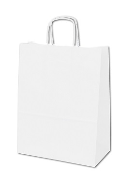 Papieren draagtas 24x12x31 cm - kleur wit - met handvat in de vorm van gedraaid koord. Verpakking met 50 stuks. Deze draagtassen hoeft u NIET aan uw klant door te berekenen. Kunt u dus gratis meegeven.