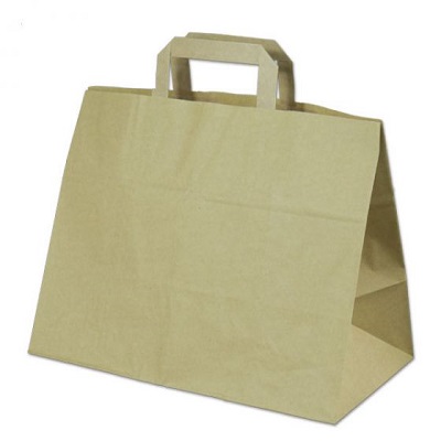 Papieren snacktassen bodemmaat 32x17cm met een hoogte van 25cm, draagtassen bruin kraft, gelijnd papier afmeting breed 32cm x hoog 25cm, inslag 2x 8,5cm. 32/17x25 - 250 stuks - 70 grams. Papieren draagtassen met platte handgrepen. Draagtas voor catering en afhaalmaaltijden. Deze draagtassen hoeft u NIET aan uw klant door te berekenen. Kunt u dus gratis meegeven.