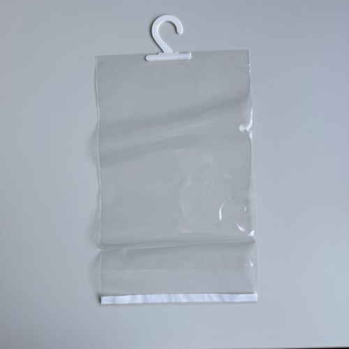 Zakken 25x35cm+5cm, PP (Polypropyleen) met kunststof haak en een lat met een breedte van 10cm, PP zakje afmeting 250x350mm, dikte materiaal is 50 micron voorzien van een zelfklevende sluiting. Verpakking per 1.000 stuks. Haakzakken.
