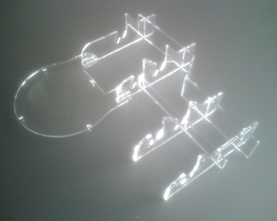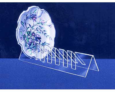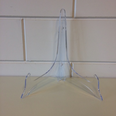 Acryl-bordenstandaard waar 3 borden op passen. De bordenstandaard heeft een lengte van 21 cm. Zo lang de voorraad strekt.
