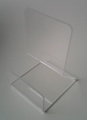 Acryl-boekensteun 105x150mm. Diepte van de boekensteun is 40mm en de diepte van de gehele standaard is 125mm. Zo lang de voorraad strekt.