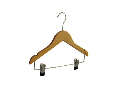 Houten kinderhanger vlak met inkepingen en verschuifbare metalen anti-slip knijpers, breedte 28cm, Economy Line, Lotus hout A-kwaliteit. Doos met 50 stuks.