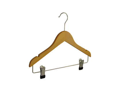 Houten kinderhanger vlak met inkepingen en verschuifbare metalen anti-slip knijpers, breedte 34cm, Economy Line, Lotus hout A-kwaliteit. Doos met 50 stuks. Laatste dozen.