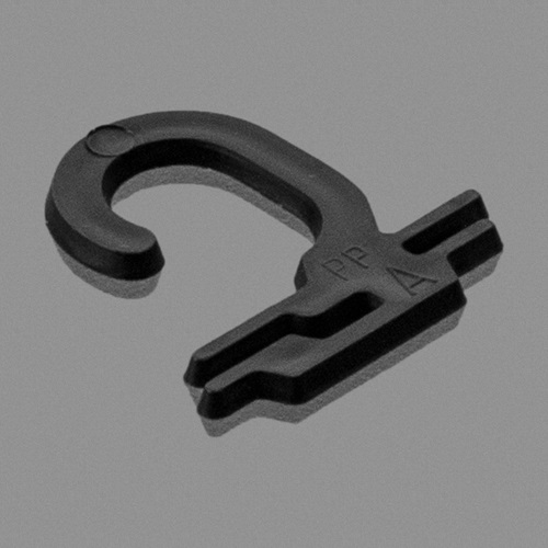 Sokkenhanger insteekhaak zwart, afmetingen hoogte 27mm, breedte 25mm en dikte 2mm. Prijs per 7.500 stuks. Dikte 2mm. Materiaal PS. Levertijd ongeveer 1 werkweek.