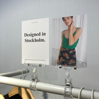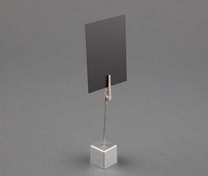 Pop-clip kaarthouder met voetje compleet transparant - hoogte tussen-staafje 100mm. Breedte klem 27mm. Klemdikte 1 mm. Draaibaar kogelgewricht.