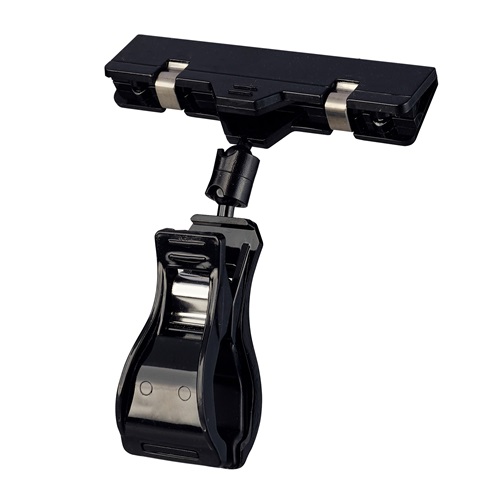 POP-clip L grote kaarthouder zwart met grote knijper. ZONDER TUSSENSTAAF. Klembreedte 80mm. Klemdikte tot 7 mm. Hoogte 106mm. Draaibaar kogelgewricht. Klemt goed tot een diameter van 30mm.