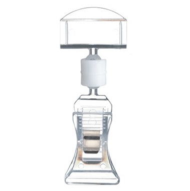 POP-clip M brede kaarthouder transparant met grote knijper. Hoogte 95mm. Breedte klem 50mm. Klemdikte 1 mm. Crystalclip. Draaibaar kogelgewricht. Klemt goed tot een diameter van 30mm. Type Clix UC-50. Uitvoering met WIT kogelgewricht en heeft een metalen verend klemmetje.