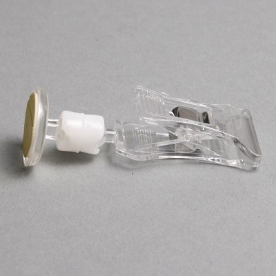 Pop-clip met 2 knijpers klein transparant met draaibaar kogelgewricht. Totale lengte van begin tot eind is 91mm.