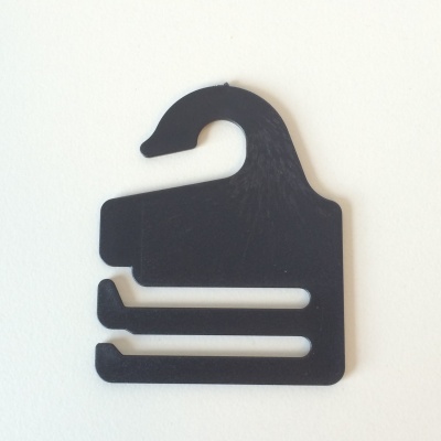 Dashanger binnen breedte 44 mm zwart. Dassenclips. Prijs per 100 stuks. Afmeting b 53mm x hoogte 70mm. Dikte 2mm. Materiaal PS.