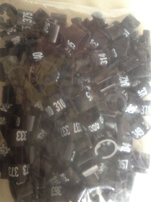 Collectie-serie MINI zwart nummer 301 tot en met 400. Inhoud zakje bestaat uit oplopende nummering. Diameter 13mm, hoogte 11mm, cijfer afmeting 6mm hoog. Geschikt voor kledinghangers met diameter van 2,5 tot 3,5mm.