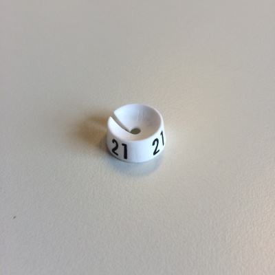 MB wisersizer wit/zwart 21 voor op kledinghanger, zakje met 25 stuks. Diameter 19,2mm hoogte 8,3mm - cijferhoogte 6,2mm. Geschikt voor hangers met diameter van 2 tot 3,5mm.