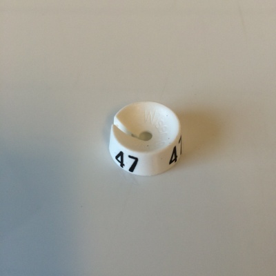 MB wisersizer wit/zwart 47 voor op kledinghanger, zakje met 25 stuks. Diameter 19,2mm hoogte 8,3mm - cijferhoogte 6,2mm. Geschikt voor hangers met diameter van 2 tot 3,5mm.
