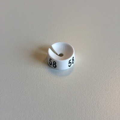 MB wisersizer wit/zwart 58 voor op kledinghanger, zakje met 25 stuks. Diameter 19,2mm hoogte 8,3mm - cijferhoogte 6,2mm. Geschikt voor hangers met diameter van 2 tot 3,5mm.
