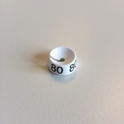 MB wisersizer wit/zwart 80 voor op kledinghanger, zakje met 25 stuks. Diameter 19,2mm hoogte 8,3mm - cijferhoogte 6,2mm. Geschikt voor hangers met diameter van 2 tot 3,5mm.