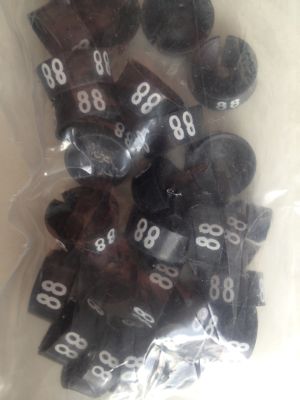 MB wisersizer zwart/wit 88 voor op kledinghanger, zakje met 25 stuks. Diameter 19,2mm hoogte 8,3mm - cijferhoogte 6,2mm. Geschikt voor hangers met diameter van 2 tot 3,5mm.