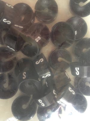 MB wisersizer zwart/wit S voor op kledinghanger, zakje met 25 stuks. Diameter 19,2mm hoogte 8,3mm - cijferhoogte 6,2mm. Geschikt voor hangers met diameter van 2 tot 3,5mm.
