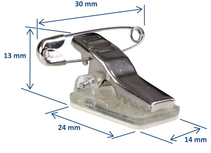 Knijper met veiligheidsspeld - zelfklevend / voorzien van dubbelzijdige klevende kleefband, prijs per stuk.