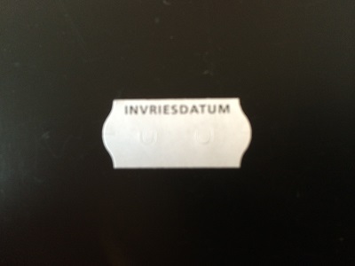 Etiket 26x12 golfrand wit diepvries bedrukt >> INVRIESDATUM << 2-sl 54.000 (=36 rollen a 1500 etiketten) Gommering / kleefkracht 2. Voorzien van combistans. FSC®-C095147. Geschikt voor o.a. Samark, Blitz, Contact, Evo, Meto, Jolly, Open, Derby, Uno, Sato Kendo, Sato Samark, Tovel, Print, Avery, Swing, Sky, Jazz, Motex, Prix, Towa.