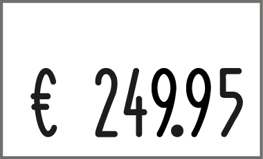 Prijstang Contact Premium 3219 (7.32 Super) afdruk grote prijs inclusief € teken. Cijferhoogte 8,5mm. Geschikt voor onze golfrand etiketten met afmeting 32x19 mm.
