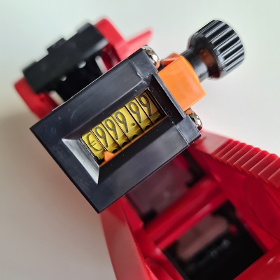 Prijstang SATO SAMARK 26-6 met een afdruk: €999.99 op golfrand etiketten afm 26x12 mm, geschikt voor artikelnummers 27113....